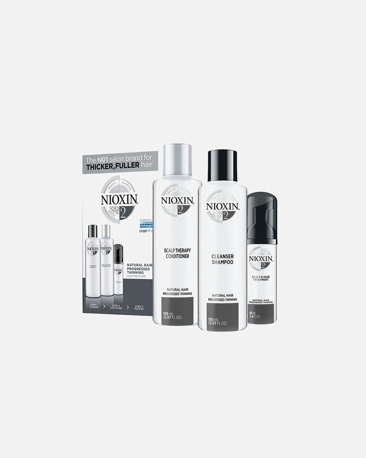 Nioxin oferuje kilka typów preparatów o spersonalizowanym działaniu. Linia Thinning Hair System obejmuje produkty oznaczone numerami od 1 do 6. "Jedynka" jest dedykowana włosom normalnym, z zaznaczającymi się już oznakami przerzedzenia. Nioxin 2 to kosmetyki dla pasm naturalnych, nie poddawanych koloryzacji i mocno przerzedzonych. Dla włosów po zabiegach chemicznych, lekko przerzedzonych sprawdzi się seria 3. Z kolei ratunkiem dla farbowanych, mocno wypadających kosmyków są kosmetyki Nioxin 4. Grubym włosom, zarówno tym poddawanym koloryzacji i zabiegom chemicznym, jak i naturalnym o dość mocnym stopniu przerzedzenia są dedykowane produkty z serii 5 i 6.