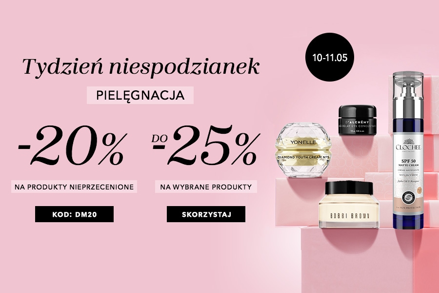Jeśli wśród propozycji nie znalazłaś/eś idealnego prezentu, skorzystaj z oferty -20% na nieprzecenione kosmetyki pielęgnacyjne. Użyj kodu: DM20