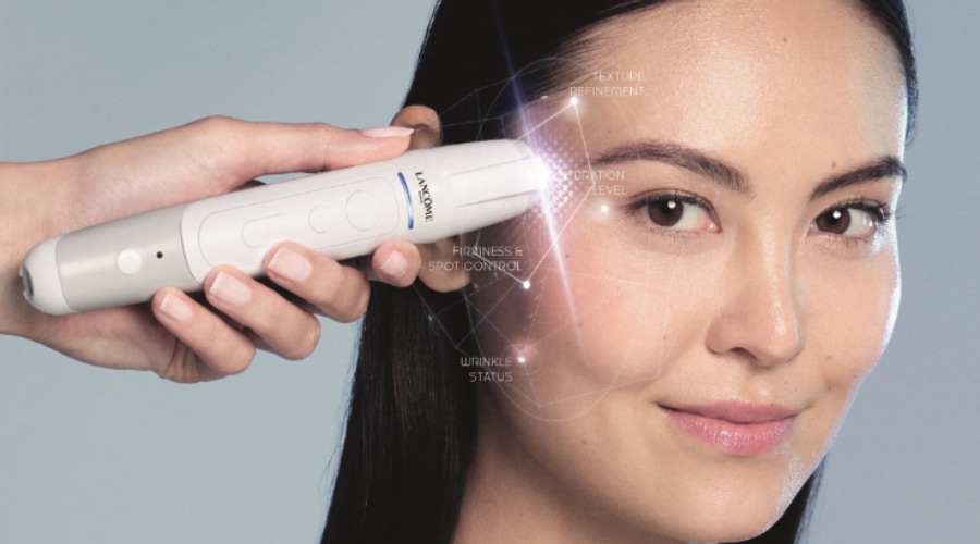 Nasze narzędzie diagnostyczne o wysokiej skuteczności skanuje skórę i powiększa ją 30-krotnie. To ultra-precyzyjne urządzenie przeprowadza optyczną analizę 6 klinicznych parametrów skóry, aby określić stopień zaawansowania oznak starzenia i umożliwić opracowanie indywidualnego rytuału pielęgnacyjnego.